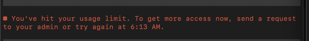 @OpenAIDevs in less than 45 mins i hit my 5 hour limit. so annoying and maybe i should go down the local model rabbit hole sooner than i can handle but i guess i'll buy a new subscription tonight https://t.co/WB1cySraZW