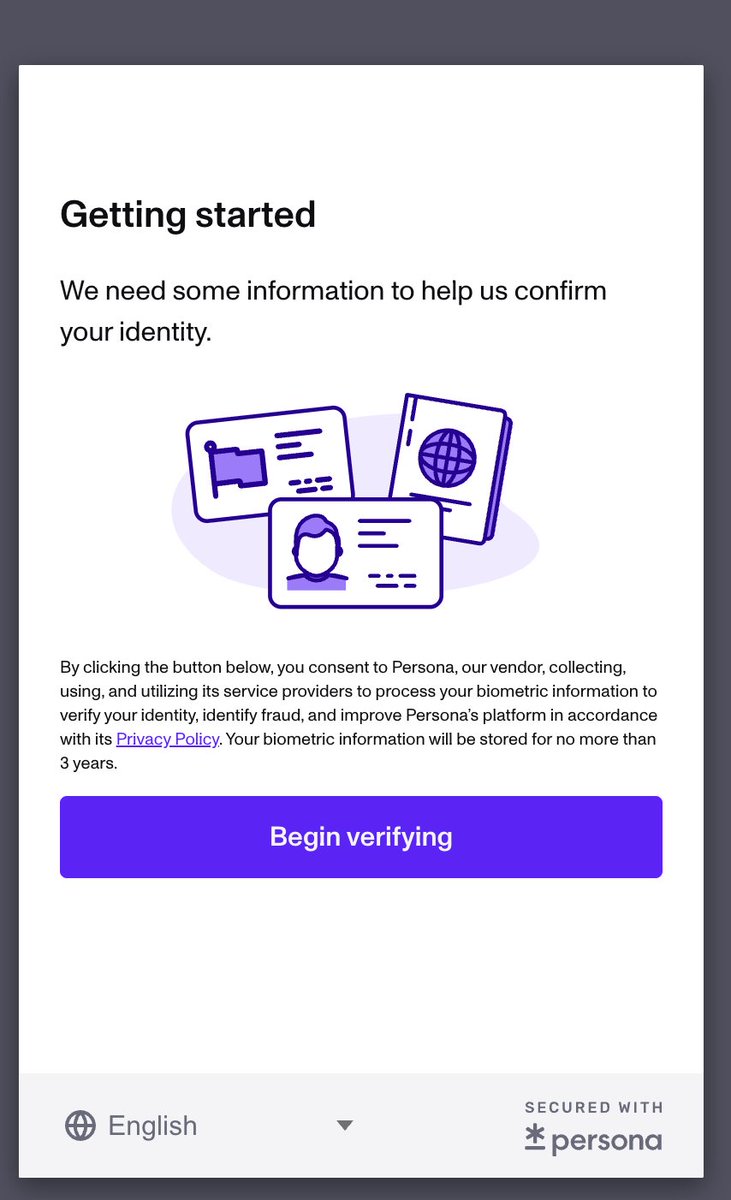 second time in the last 2 days having to "verify my identify" with persona again i wish they had some universal token so i don't have to keep doing this lmao this is for a different service though https://t.co/wgutLJn1Bk